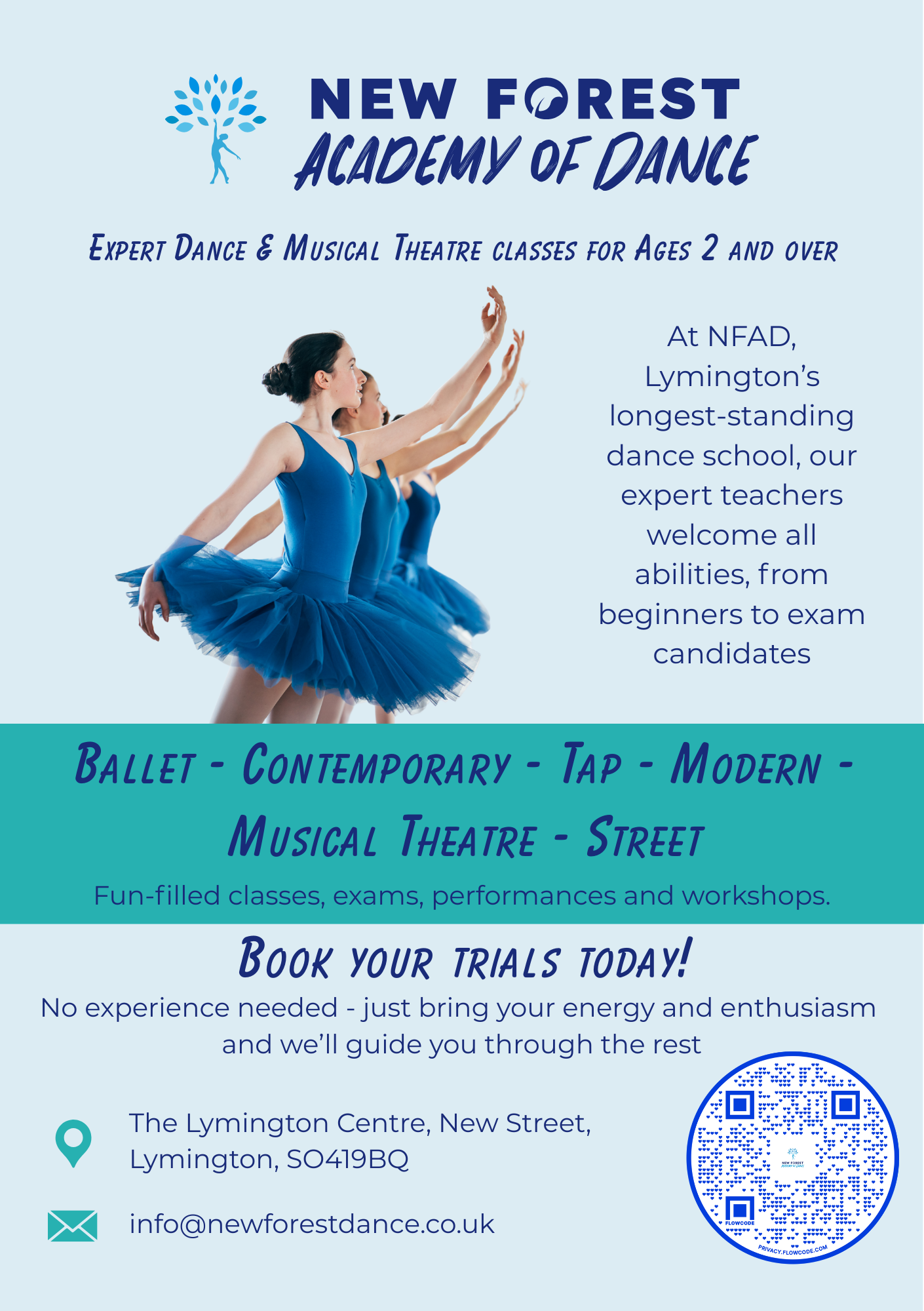 New Forest Academy of Dance is a well-established, community-based dance school in Lymington, offering high-quality dance training for children, teenagers and adults from age 2.5 upwards.